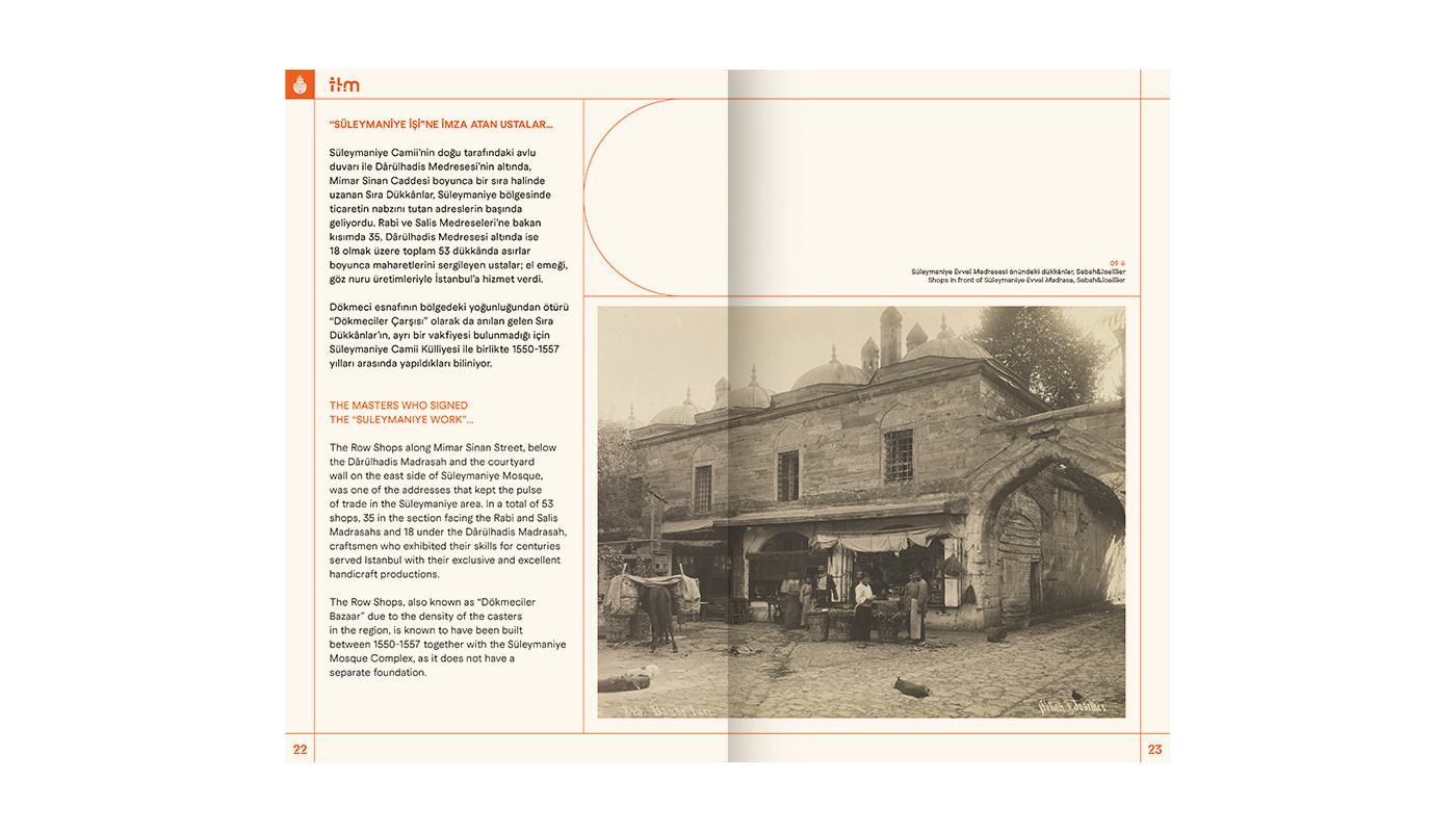 Suleymaniye Mosque and Complex, one of the four sites recognized as a World Heritage Site by UNESCO in 1985, was built by Suleiman the Magnificent between 1550-1557 by Mimar Sinan, the chief architect of the period. The Row Shops, an integral part of the Süleymaniye Complex, which were abandoned in recent years, were transformed into the “IBB Istanbul Design Museum” with the restoration works completed by Istanbul Metropolitan Municipality (IBB) in 2023. A total of 53 shops, where traditional arts and contemporary designs are intertwined, aim to make visible the creative potential of Istanbul, which has the title of design city, with a sustainable approach.