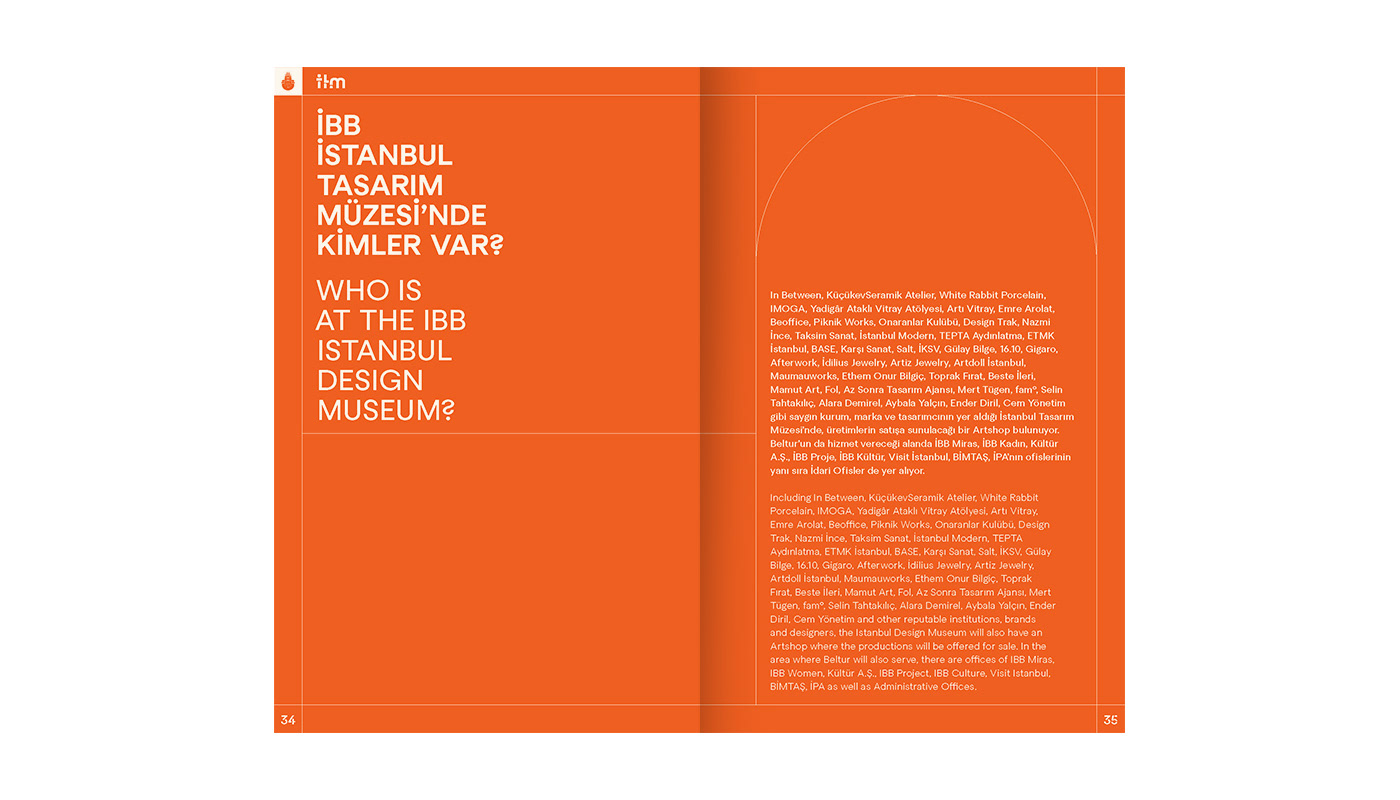 Repetitive arches are the main focus of the architecture throughout the street, thus creating an inspiration point for the branding. Visual identity, promotional materials, and signage design revolves around the same concept contributing to the intended atmosphere of the Istanbul Design Museum.